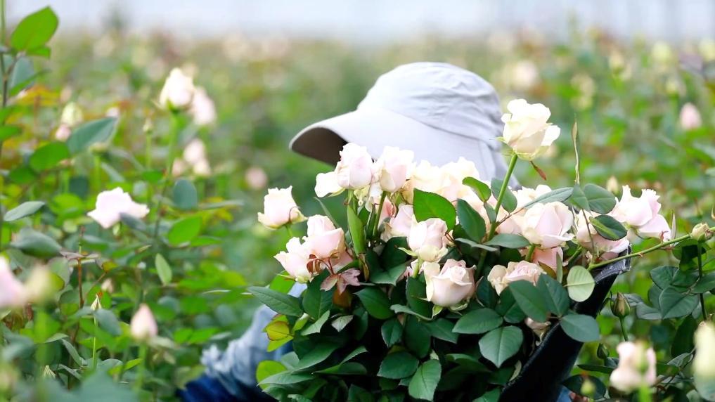 当前,鲜花港已种植玫瑰种苗150万株,种植玫瑰10种,鲜切玫瑰产物不只畅销国内市场,还成功出口至俄罗斯、哈萨克斯坦等国度。