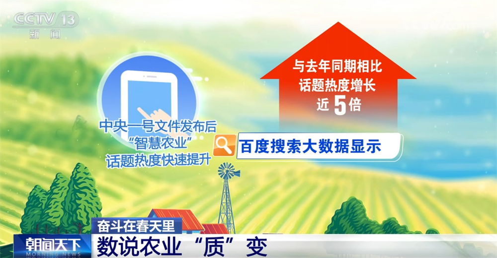 本年的地方一号文件强调,以科技立异引领先辈出产要素集聚,因地制宜成长农业新质出产力。提出支撑成长聪慧农业,拓展人工智能、数据、低空等手艺使用场景。文件发布后,“聪慧农业”话题热度快速提拔,百度搜刮大数据显示,取客岁同期比拟,线倍。