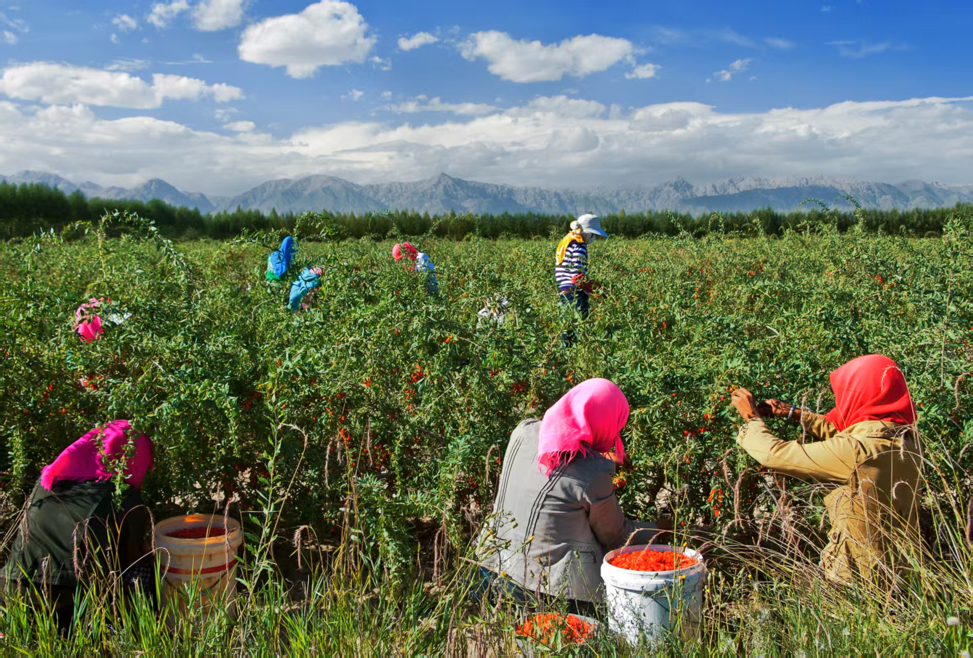 每年枸杞采摘季海还会雇用采摘工来采收,最多的时候工人的工资就发出去了20万元。58岁的四川乐山采摘女工吴瑞华一到采摘枸杞的季候,就自动联系经纪人到格尔木采摘枸杞。“工资一天200块钱,本年是第三年来农场采摘枸杞了,对我们这些年纪大点的家庭妇女来说,是一个很好的增收渠道,”吴瑞华说。