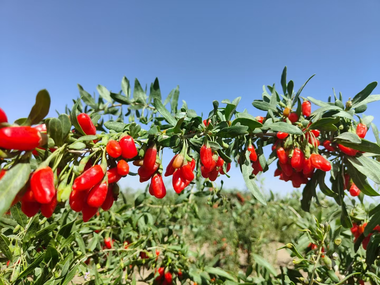 青海省海西蒙古族藏族自治州格尔木市河西农场万亩枸杞地,空气中分发着阵阵果喷鼻,鲜红的枸杞密密层层地挂正在枝头,颜色鲜红清透,颗粒丰满,令人馋涎欲滴。摘一颗鲜枸杞放正在口中,一股甜美的汁液流入口中,淡淡的清喷鼻沁脾,新鲜的果肉入口即化,口感极佳。
