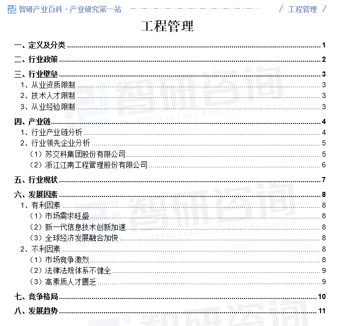 注:本文转自智研财产百科平台,如需获取更多行业消息和定务,可进入智研征询官网搜刮查看。智研财产百科是智研征询推出的产研东西平台,努力于为您供给全方位的百科式财产消息查询办事。智研征询践行用消息驱动财产成长的企业,完美和丰硕企业方,依托财产百科平台提拔消息价值,持续为行业成长及企业投资决策赋能。工程办理财产百科做为工程办理财产一坐式系统化研究东西,全面归纳了工程办理财产学问消息,内容涵盖工程办理财产的定义、分类、政策、财产链、合作款式、成长趋向等,并依托消息手艺成立智能互链的行业学问图谱,为行研从业者及相关投资者供给深切的洞察力和全面的消息。智研征询以“用消息驱动财产成长,为企业投资决策赋能”为品牌。为企业供给专业的财产征询办事,次要办事包含精操行研演讲、专项定制、月度专题、可研演讲、贸易打算书、财产规划等。并供给周报/月报/季报/年报等按期演讲和定制数据,内容涵盖政策监测、企业动态、行业数据、产物价钱变化、投融资概览、市场机缘及风险阐发等。前往搜狐,查看更多。